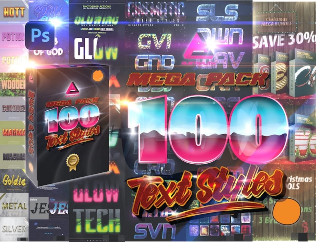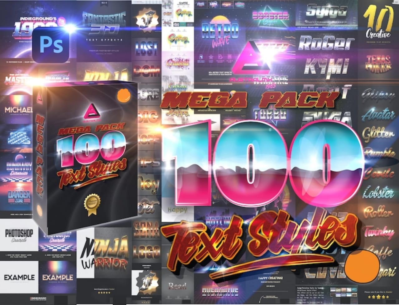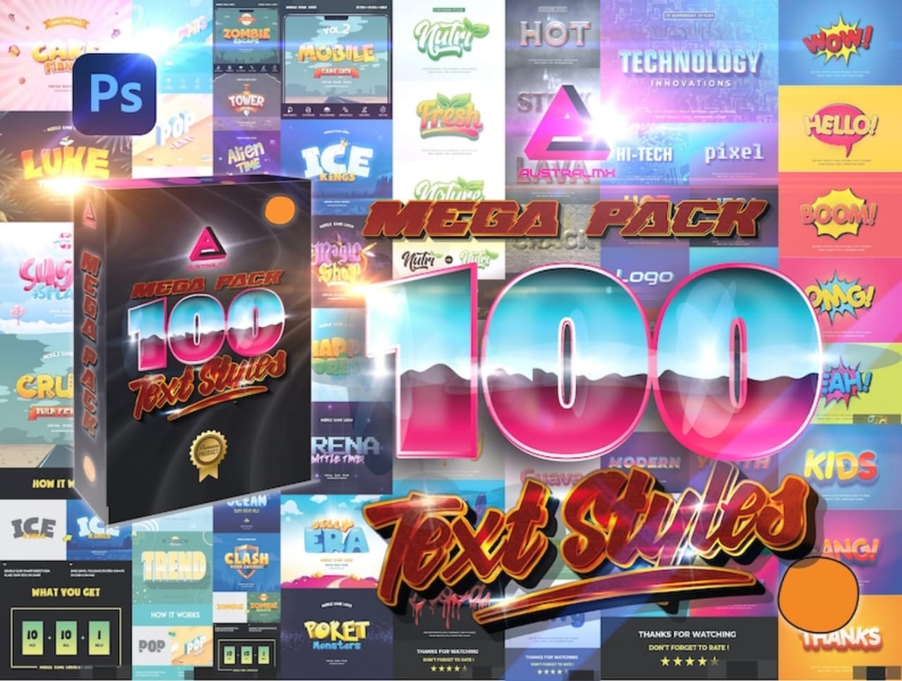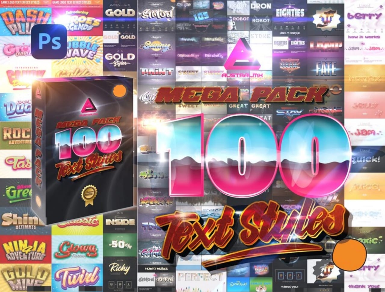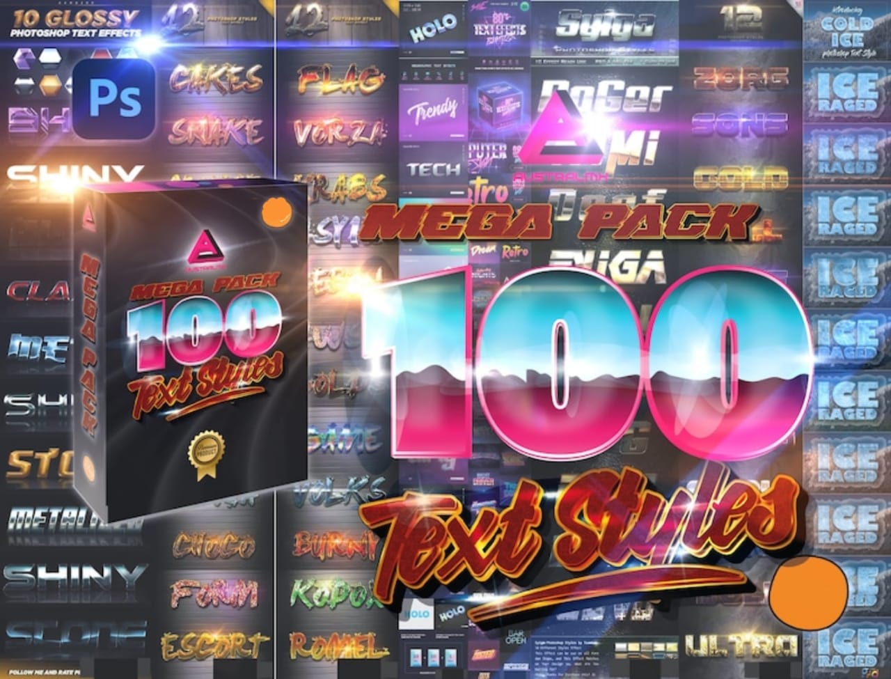 🎨 100+ Premium Photoshop Text Styles — Instantly enhance your headlines, logos, and social media graphics.